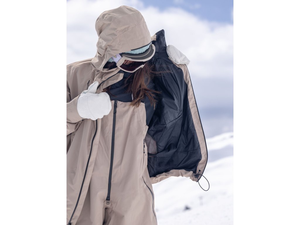 Materiál: | DRYRIDE™ 100% recyklovaný (certifikovaný GRS) polyester, Bluesign® certifikovaný, hladký ultramatný dvouvrstvý materiál s plátnovou vazbou. Voděodolnost 20K / 20K s vylepšenou odolností DWR (80/30 dlouhotrvající odolnost). Poskytuje skvělý pohyb a zároveň si udržuje odolnost a strukturu pro technický výkon. |